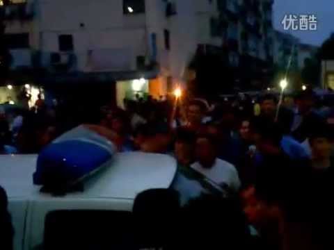 大批警察赶来调解,群众不肯罢休,继续围住执法车,坚持城管出来道歉。后来当局出动过百防暴警察和特警,将群众驱散,护送城管离开。